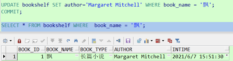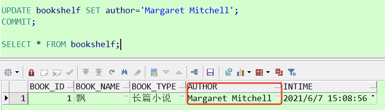 UPDATE bookshelf SET author='Margaret Mitchell' WHERE book_name = '飘';