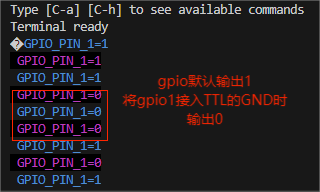 2.实现效果,GPIO0 每两秒循环亮灭一次,每两秒打印 GPIO1 的电平