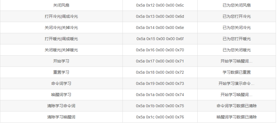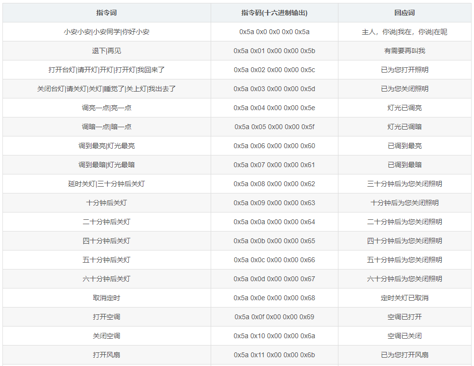 · 指令序号:代表唯一的指令:0x00 为唤醒词的序号