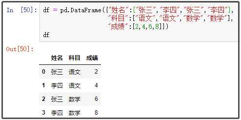df = pd.DataFrame({"姓名":["张三","李四","张三","李四"],