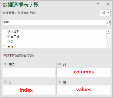 index:相当于上述"数据透视表字段"中的行; -