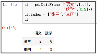 df.index = ["张三","李四"]