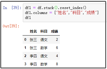 df1.columns = ["姓名","科目","成绩"]