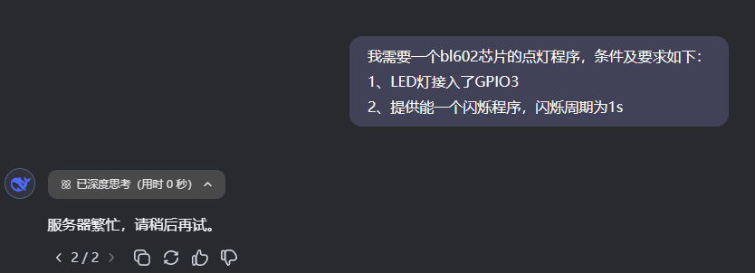 在开始让 DeepSeek 生成之前,注意要提前搭建好 Ai-WB2 的二次开发环境和测试工程,生成的代码才能直接复制。