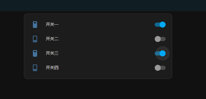 单击左侧传感器界面,HA 控制界面,这里设置了四个开关