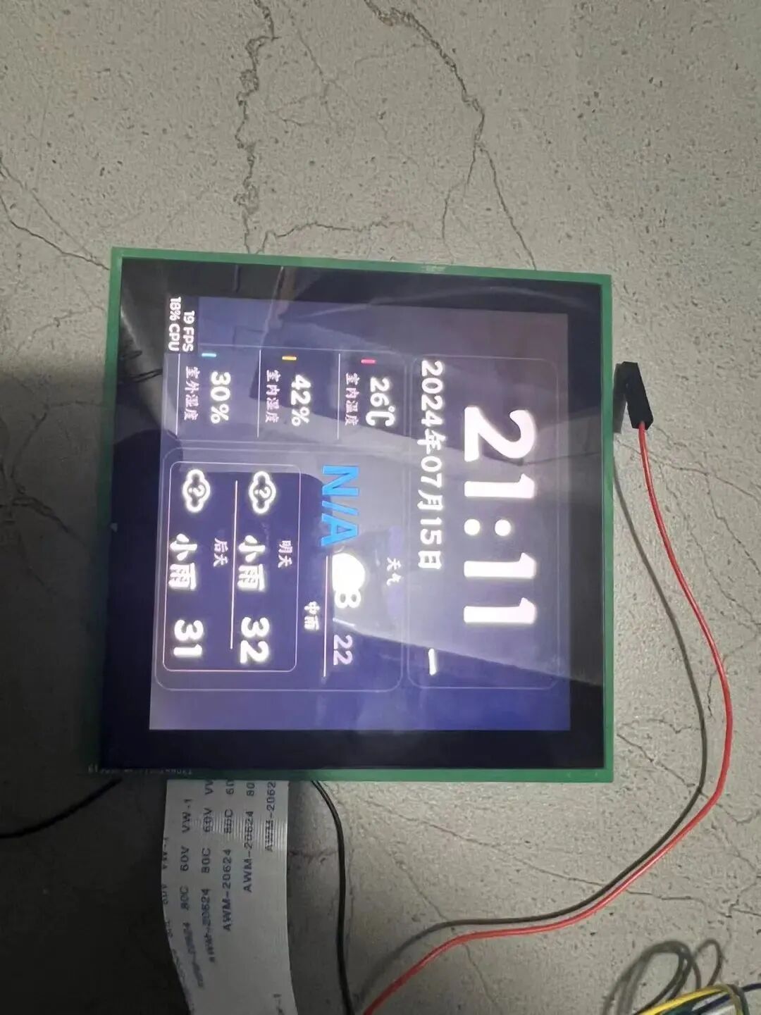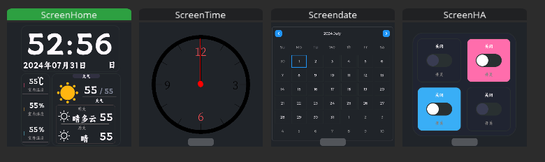 上面是时间日期和星期几,左下是从 HA 里面获取的各种传感器的值,右侧是三天的天气。