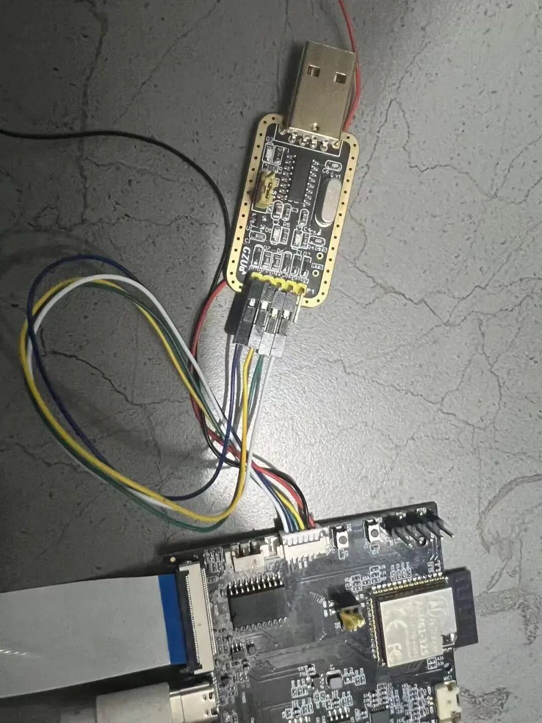 安信可官方很贴心的送了 6p 1.25 排线,方便下载程序(接线如图,红黑不接)