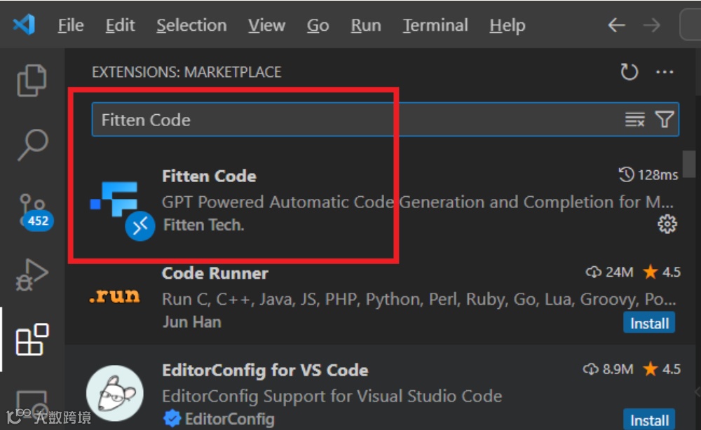 比如在 VSCode 只需要在 Extensions 中搜索 "Fitten Code" 并选择对应的插件下载即可: