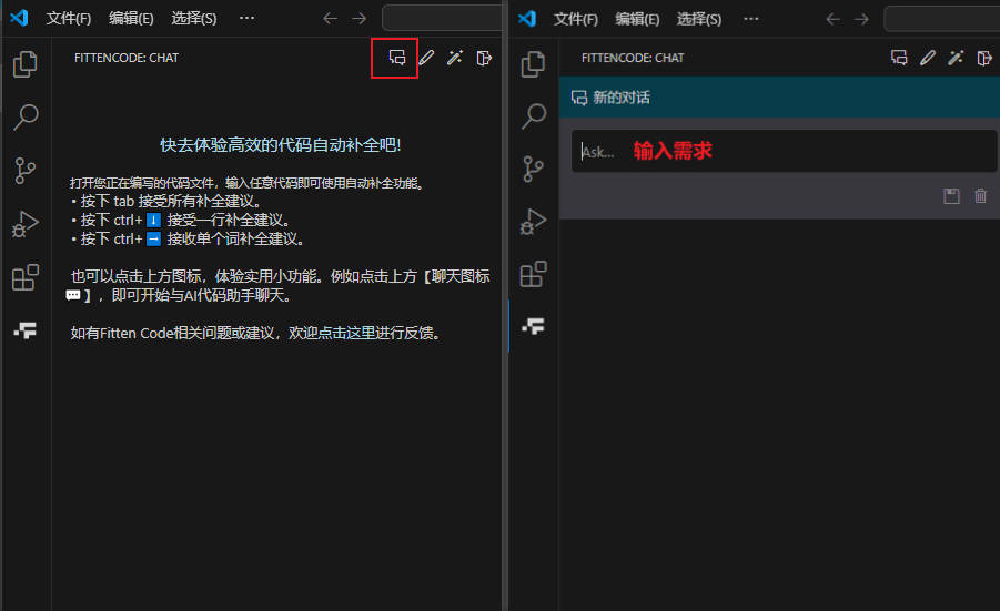 目前 Fitten Code 可以通过两种方式帮助你完成代码工作: