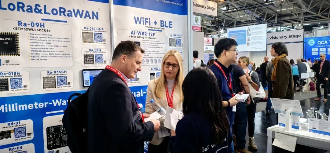 此次展品主要包括Wi-Fi系列、蓝牙系列、雷达系列、LoRa系列、TB系列、TG系列等多系列模组产品,让用户体会到超长距离通信、抗干扰、低时延、海量连接、高可靠性等产品优势。