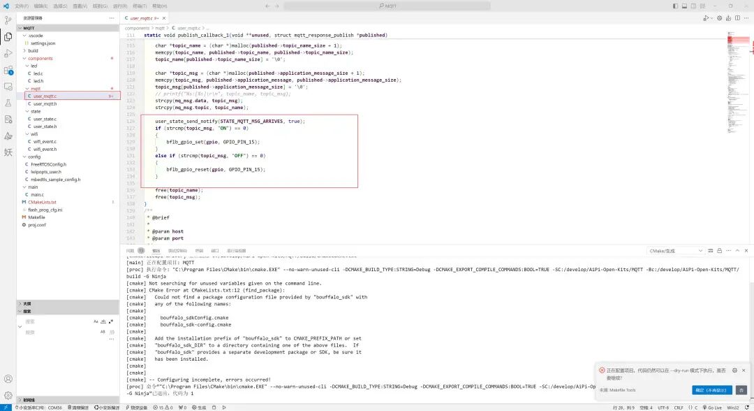 这里移除了无用的代码,仅仅保留了WIFI相关的MQTT相关的。并且自己写了一个控制IO15的LED.h (移除了无用的easyflash 和其他的Wifi6-led等等)。