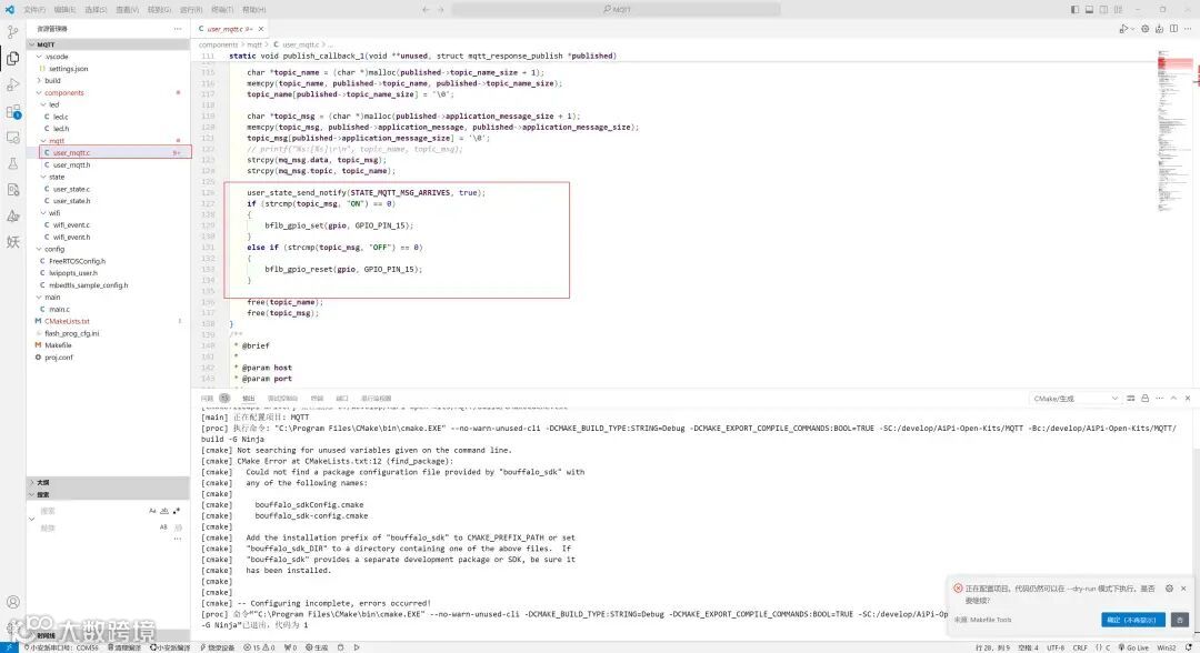 只需要使M61-32S订阅这个主题,并且监听这个主题的Message当接收到的message为 ON的时候就打开台灯。等为OFF的时候就关闭台灯。