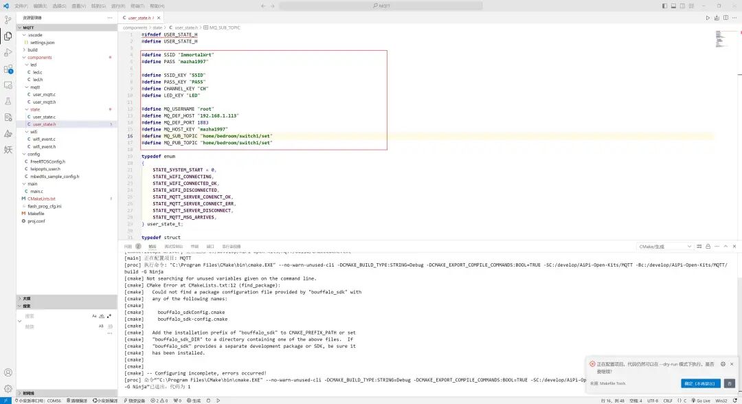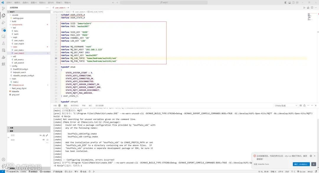Wi-Fi和MQTT的连接代码部分如下图所示,只需要在这里修改成你自己的Wifi账号和密码已经MQTT服务器的账号密码以及队列信息。(这里是部署在香橙派Zero3 1G上的,实际占用RAM 500 mb左右。)