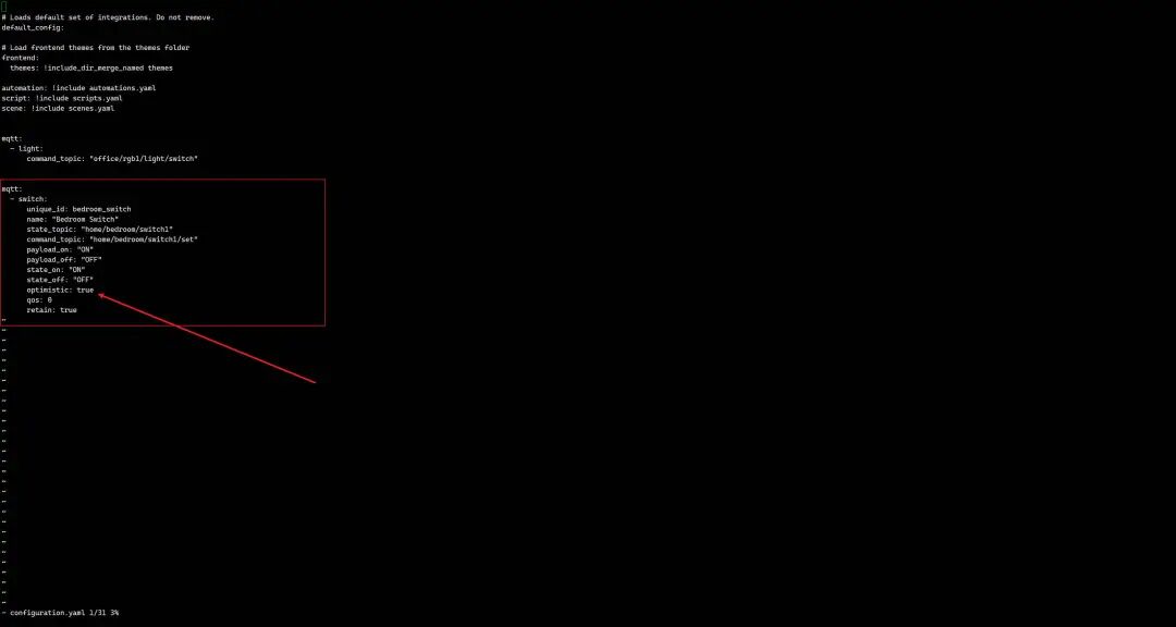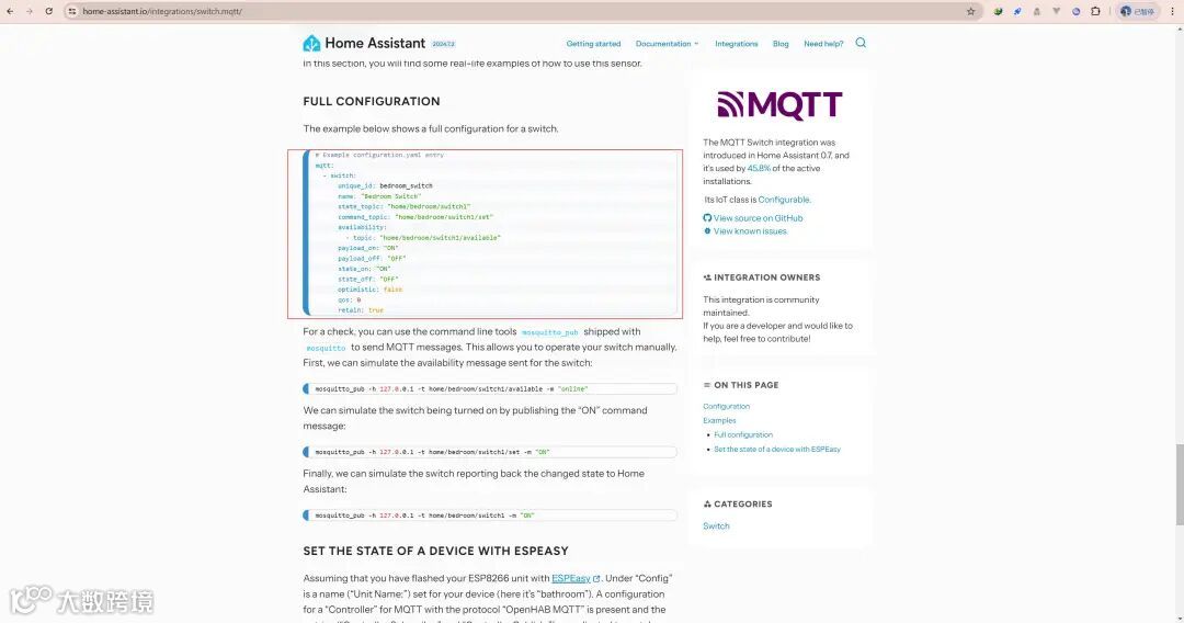 这次使用的使通过YML的方式使其HA识别。由于这次DIY的是一个台灯,在可以在HA官网中找到对Switch的描述。