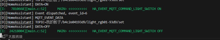HomeAssistant 平台的下发开关控制之后,会触发 HA_EVENT_MQTT_COMMAND_LIGHT_SWITCH 事件,所以在