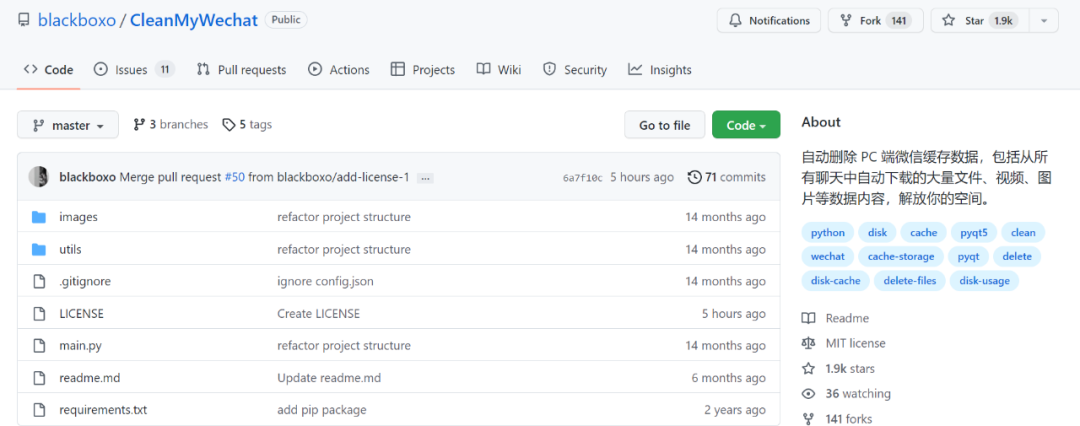 简单来说,CleanMyWechat一款开源的PC端的微信清理工具。