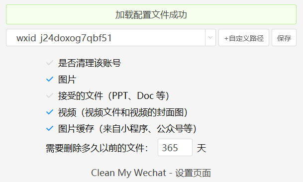 此外,在CleanMyWechat的【设置】选项里,还可以自行勾选要清理的内容,以及时间范围。