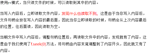 # 朝文件中写入内容后,调整句柄位置后,再读取,会发生什么?