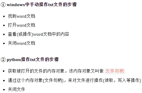 1)类比windows中手动操作txt文档,说明python中如何操作txt文件?