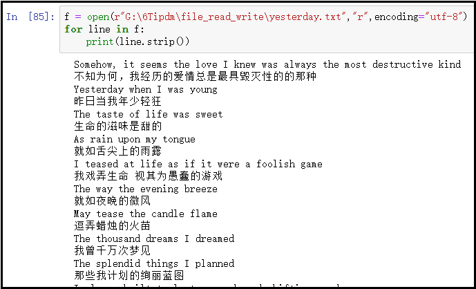 f = open(r"G:\6Tipdm\file_read_write\yesterday1.txt","r+",encoding="utf-8")