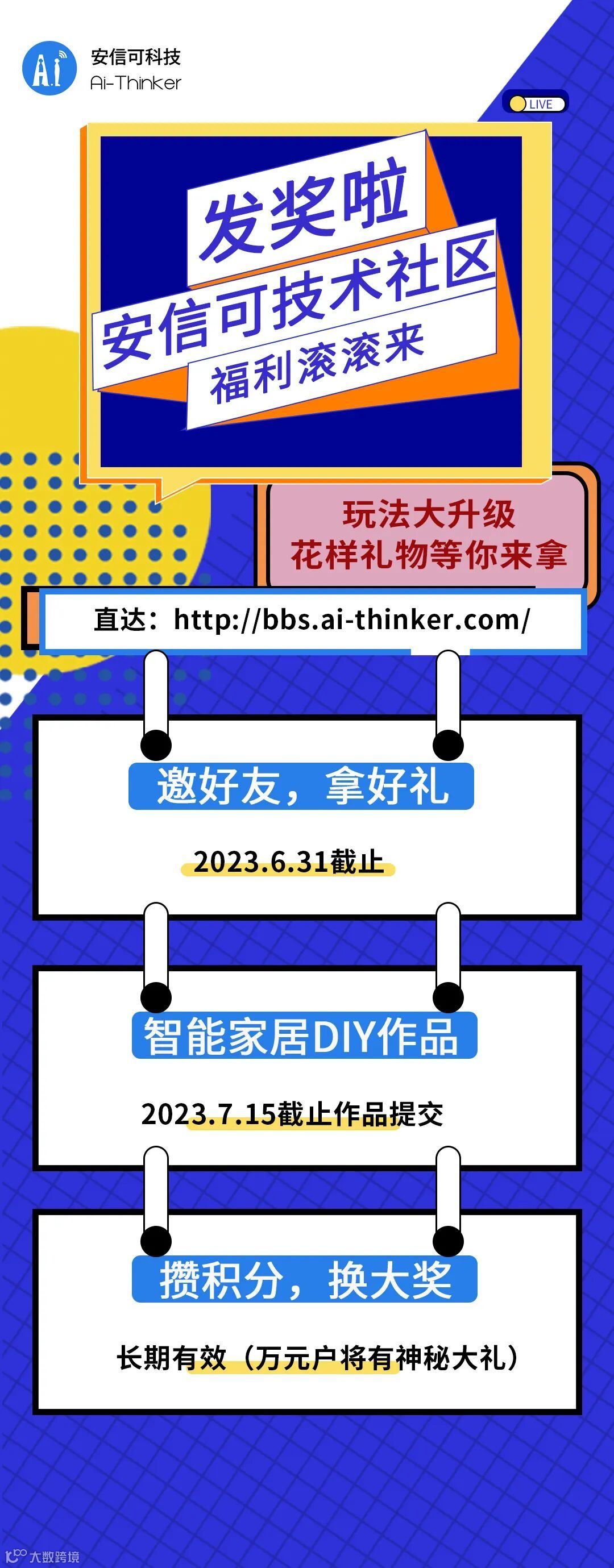 各位小伙伴好!智能家居DIY活动正在进行中,这次板子管饱,还有京东购物卡相送。活动页面直达:https://bbs.ai-thinker.com/forum.php?mod=viewthread&tid=44894&_dsign=09201d67