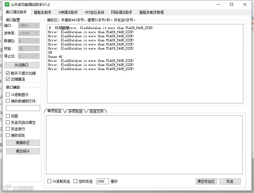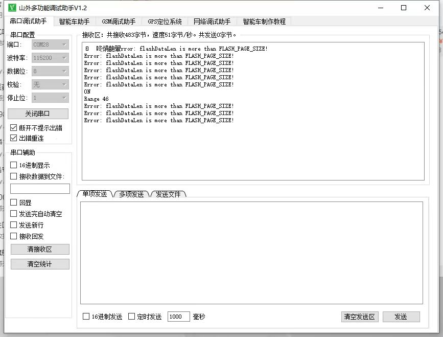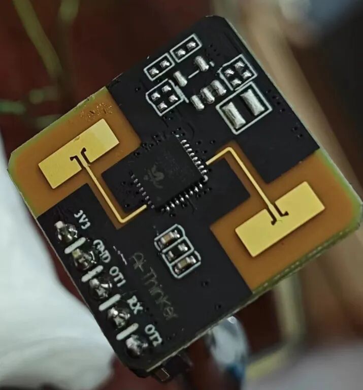 模块刚购买回来,接上串口总是提示:“Error:flashataLen is more than FLASH PAGE SIZE!”。经过安信可的工程师协助,将SW烧写口的焊盘焊上线,重新烧写固件,就完美解决了问题。当无人存在时雷达模块通过串口返还:“OFF”,当有人出现在探测范围内时,返回“ON”,并且还有rang信息。