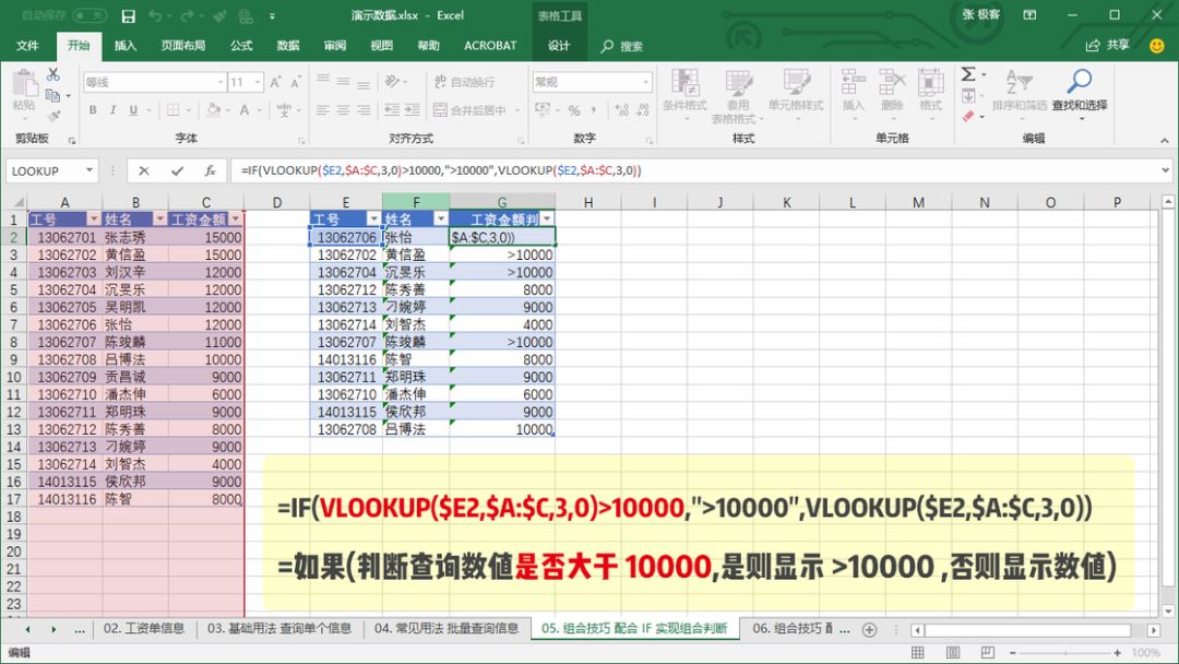 比如通过 IF 来判断工资是否超过 10000 元。这个用法中,VLOOKUP 起到过滤的作用,将需要用到的数据作为过滤条件,实现组合判断。