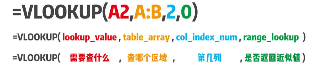 其实,VLOOKUP 的语法很简单,翻译成一眼就能看明白的话就是——VLOOKUP 函数需要有 4 个部分:「需要查什么、查哪个区域、第几列、是否返回近似值」。
