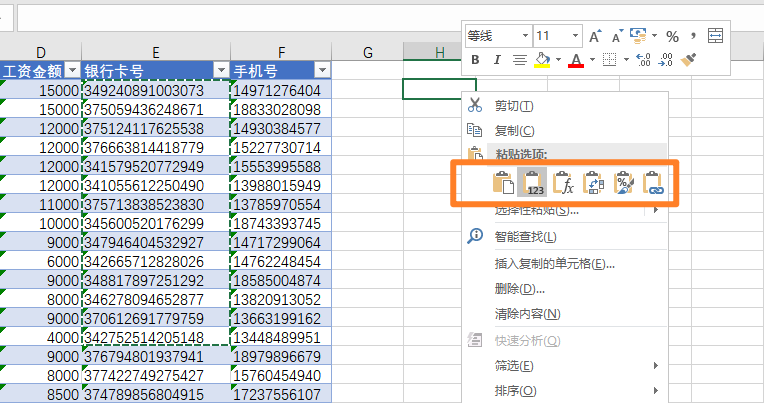 我们需要查找的信息是「工号」这类具有唯一性的信息,所以利用「常见方法:批量查询信息」中的内容可以轻松搞定银行卡号的批量填充。