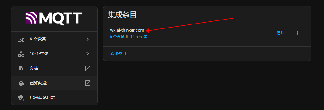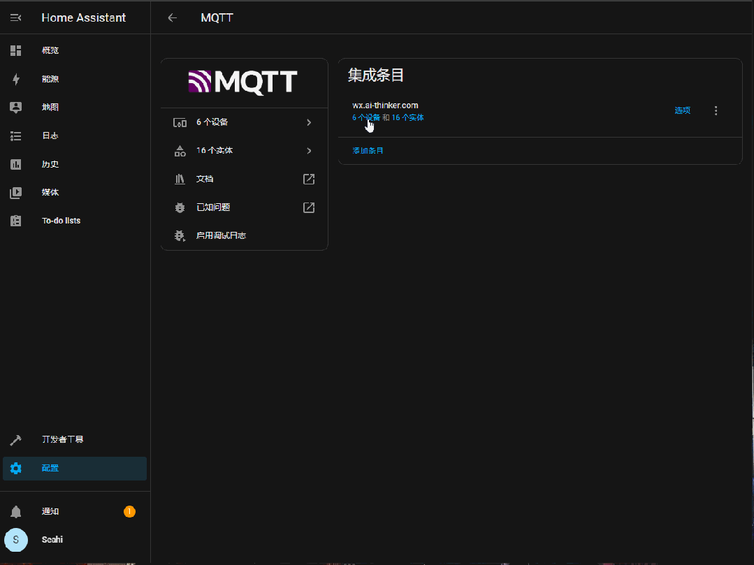 HomeAssistant 的MQTT集成已经成功连接到MQTT 服务器