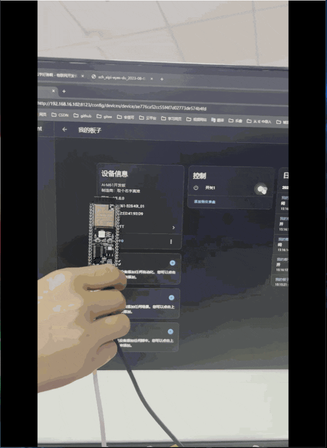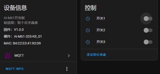 这样烧录运行之后,HomeAssistant 上的开发板这个设备就有三个开关: