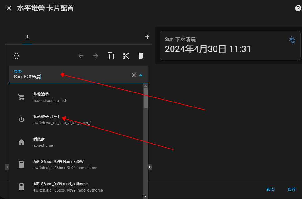 static ha_sw_entity_t entity_sw1 = {.name = "开关1",.icon = "mdi:power",.unique_id = "sw1",};static ha_sw_entity_t entity_sw2 = {.name = "开关2",.icon = "mdi:power",.unique_id = "sw2",};static ha_sw_entity_t entity_sw3 = {.name = "开关3",.icon = "mdi:power",.unique_id = "sw3",};homeAssistant_device_add_entity(CONFIG_HA_ENTITY_SWITCH, &entity_sw1);homeAssistant_device_add_entity(CONFIG_HA_ENTITY_SWITCH, &entity_sw2);homeAssistant_device_add_entity(CONFIG_HA_ENTITY_SWITCH, &entity_sw3);