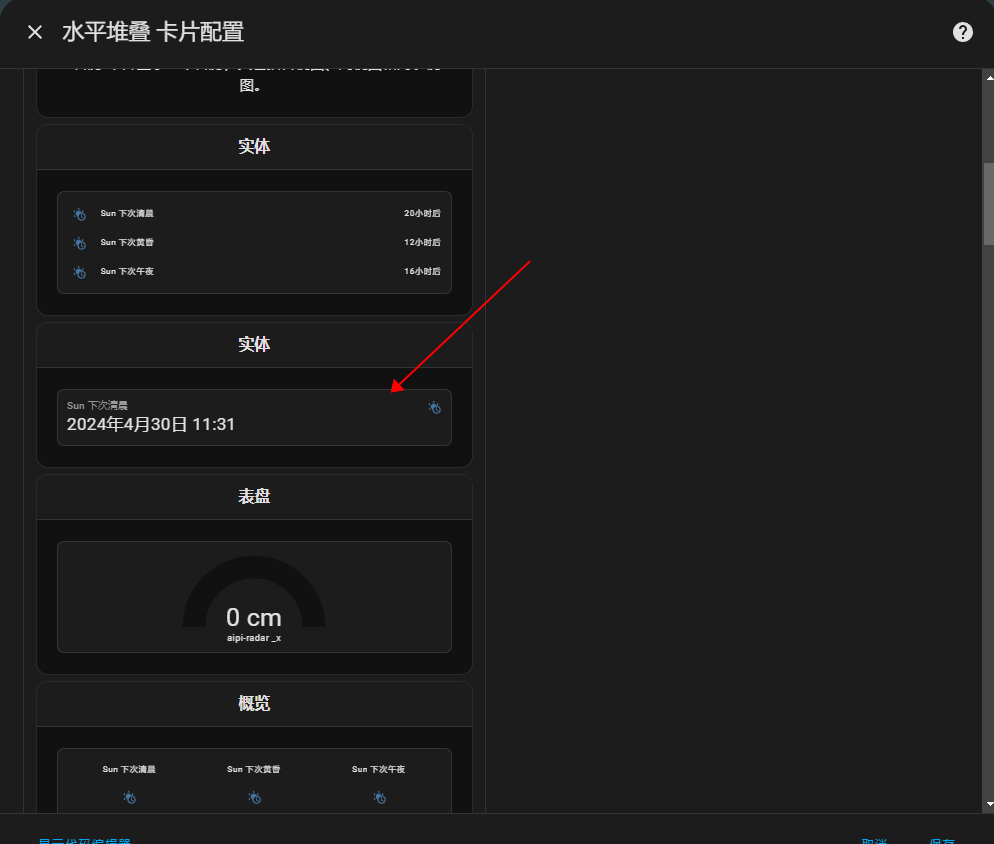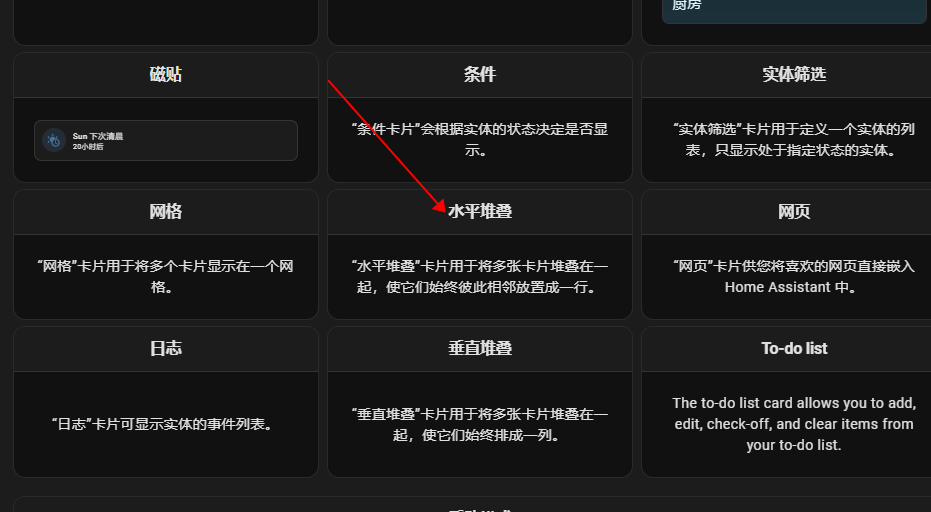 然后在右下脚选择"添加卡片",在弹出里选择"水平堆叠":