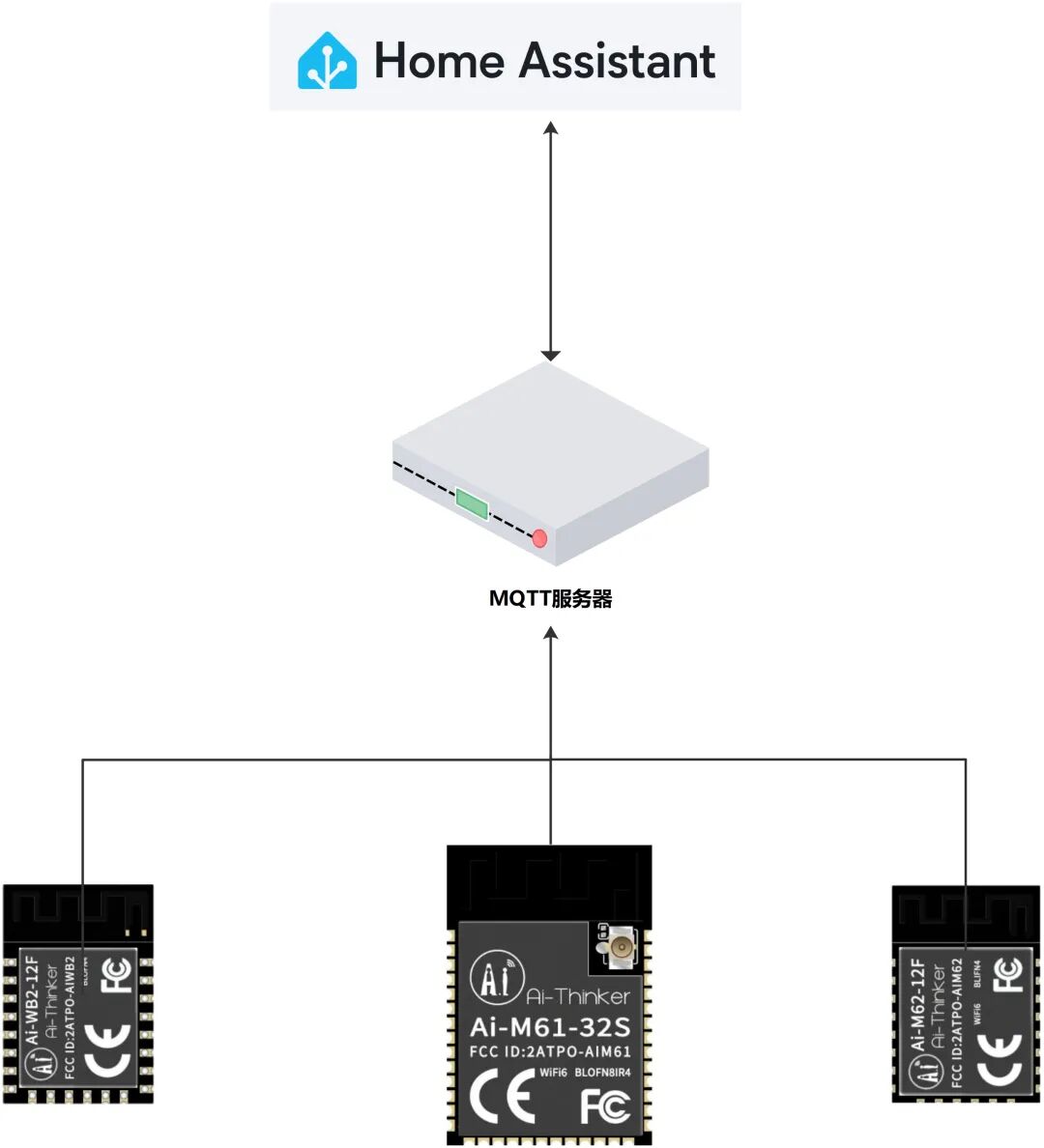所以在使用HomeAssistant 的MQTT 的时候,需要先配置远程MQTT服务器。设备接入HomeAssistant 的方式请看下图: