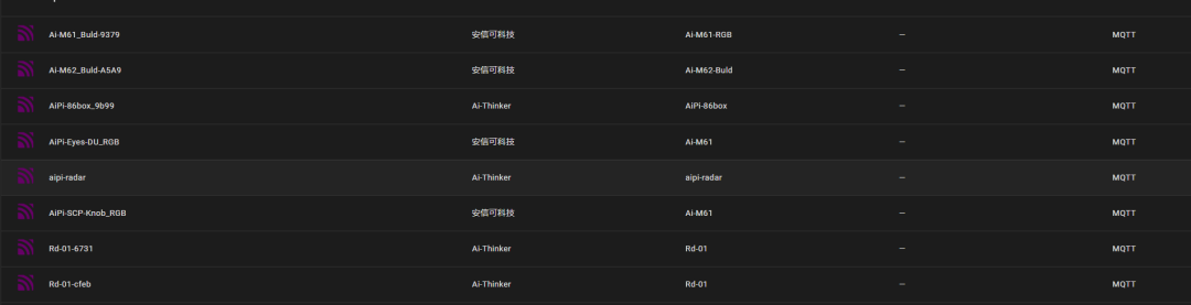 首先需要了解HomeAssistant 的MQTT 自动发现机制:HomeAssistant 官方规定其他MQTT设备想要在HomeAssistant中显示,就需要在连接MQTT服务器的时候,以实体的方式进行登录。HomeAssistant 平台才能识别到,并显示在MQTT集成里面。如下图所示: