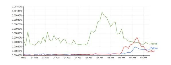 为了用一个稍微更复杂的例子来证明这个概念,我决定比较一下三个相关提及的编程语言:Python,Pascal, 和 Perl.