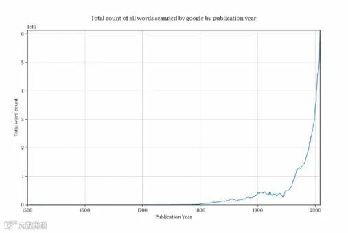 绘制出这个图来展示谷歌每年收集了多少单词: