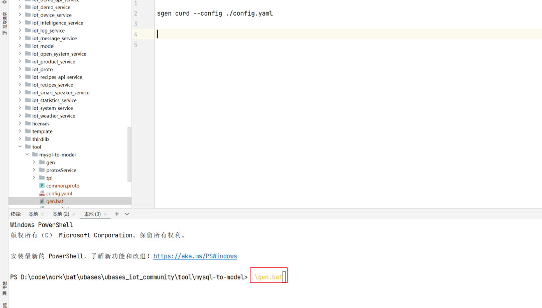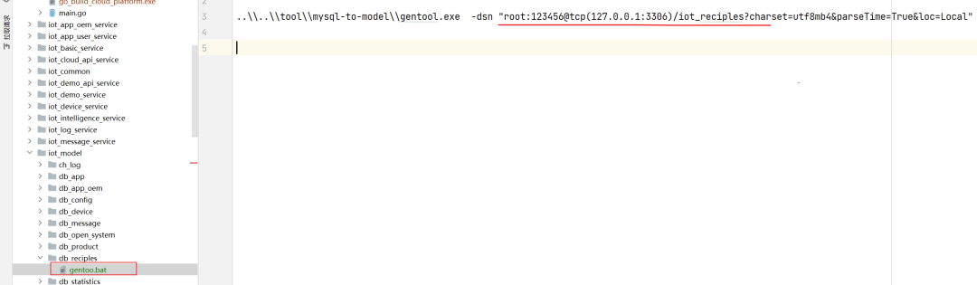 进入到 iot_model 目录,创建目录 db_recipes,生成和存放食谱相关的 model 和 orm,创建 gentoo.bat 文件,添加如下代码: