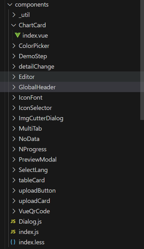 前端大部分组件使用的 ant-design-vue 的原生组件,直接参照官方文档就可以开发了;另外框架自定义了 ChartCard、ColorPicker、DemoStep、detailChange、Editor、GlobalHeader、IconFont、IconSelector、ImgCutterDialog、MultiTab、NoData、NProgress、PreviewModal、SelectLang、tableCard、uploadButton、uploadCard、VueQrCode 组件,你可以参照已实现示例进行使用;