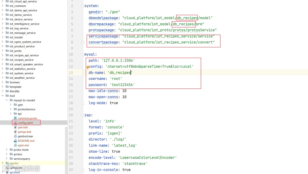 在生成之前,我们先编辑下代码生成工具的配置文件