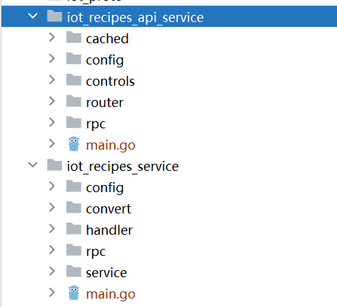我们先将模板目录 Copy 出来,修改里面的项目名称,这里我将项目名称定义为 iot_recipes_api_service、iot_recipes_service,这个两个服务专门用于给厨房类家电提供制作食谱相关业务接口;