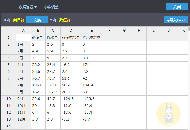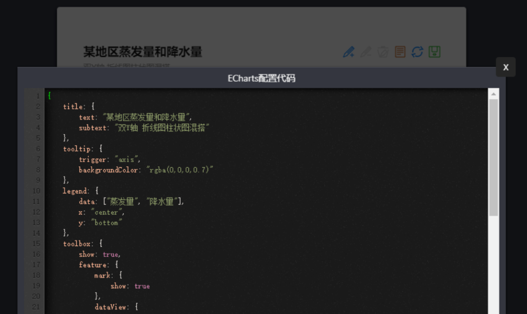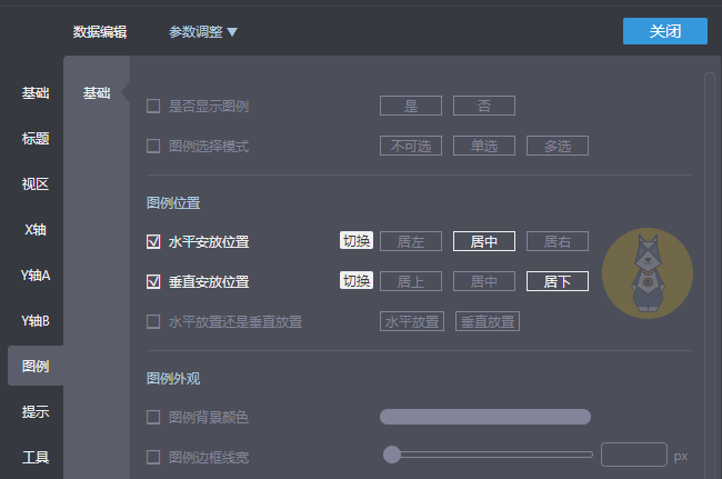 选择示例图形后,我们可以分别对图表、数据、参数、代码进行调整。