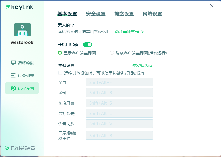 1、便于使用:RayLink提供了一个直观的界面并且设置非常简单,这意味着电脑小白也能轻松上手。简单设置无人值守即可远程访问