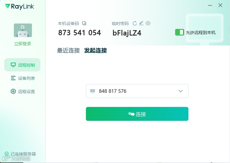 软件使用简洁,输入设备码和密码就能开始远程控制设备。
