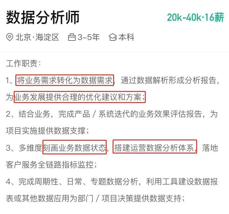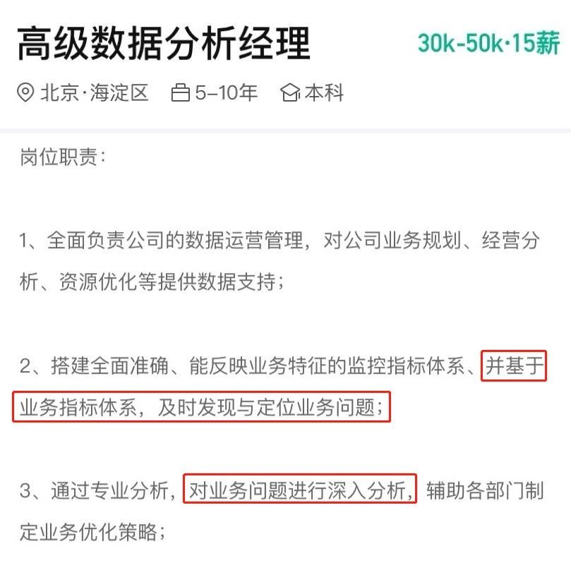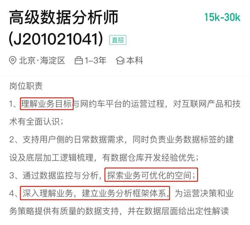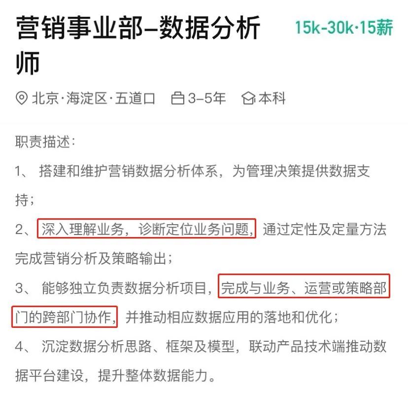 但这些高薪岗位招聘中无一例外都强调两个字——业务,这就告诉我们数据分析师一个道理: