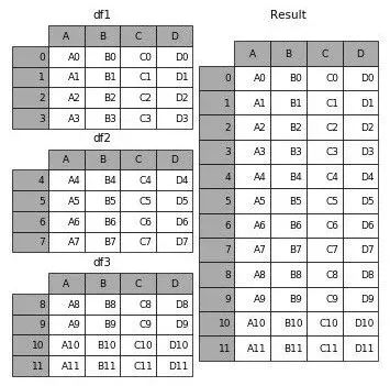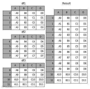 Concat允许用户在表格下面或旁边追加一个或多个DataFrame(取决于您如何定义轴)。