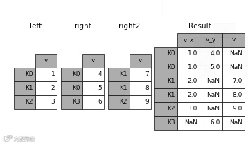 Merge将多个DataFrame合并指定主键(Key)相同的行。