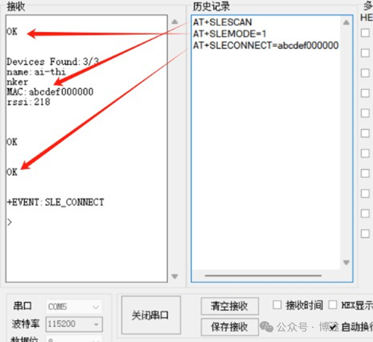 AT+SLESCAN //进入主站模式后,扫描附近从站
