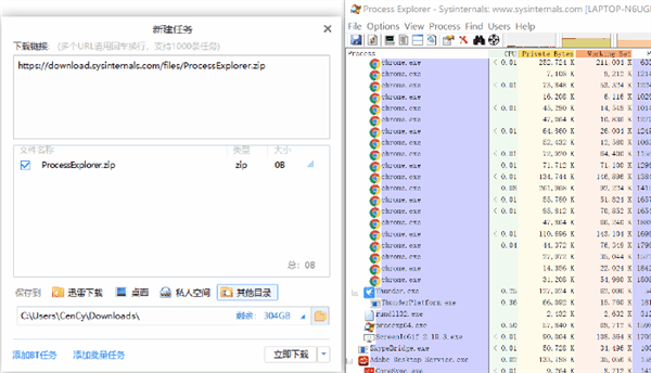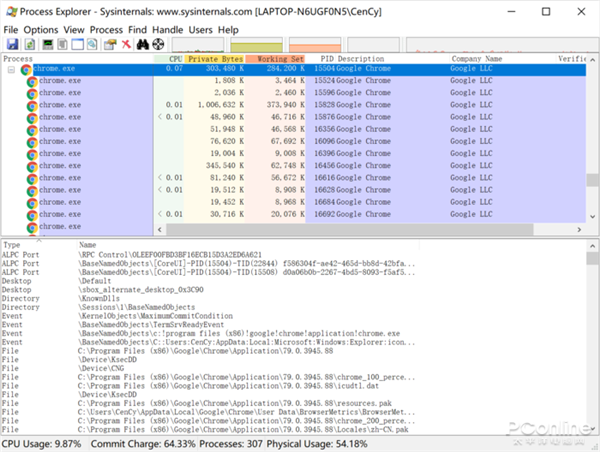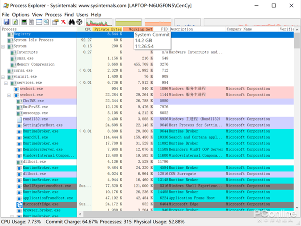 下载地址:https://docs.microsoft.com/zh-cn/sysinternals/downloads/process-explorer我们知道,Windows 系统中自带任务管理器,可以查看系统进程。但是,对于很多事情,系统自带的任务管理器力有不逮,这时候这款微软出品的增强版任务管理器 Process Explorer 就可以大发神威了。Process Explorer 可以用来管理系统中的种种进程,但显示的信息,要远比 Windows 自带的任务管理器来得详细。例如,Process Explorer 会以不同的颜色,标注不同的类型的进程,例如暂停中的进程用灰色显示,服务用粉色显示等等,这要比 Windows 自带的任务管理器更加详细直观。Process Explorer 在调成双窗口模式下,还可以看看某个软件到底在搞什么小动作,如,选中了“Chrome.exe”进程后,这个进程读取了什么文件、访问了注册表哪个键值、使用了什么端口、引发了什么事件,都能一一监控。与此同时,Process Explorer 还提供了其他一些特别实用的功能,例如揪出弹窗对应哪个进程。很多朋友经常会遇到这种情况 —— 某个弹窗突然出现,这显然是有软件搞的流氓小行径。但到底是什么软件弹的窗?用 Process Explorer 就一目了然了。Process Explorer 主界面中,有一个类似瞄准镜的图标,用鼠标拖动这个图标到某个窗口中,Process Explorer 自动就能分辨出这个窗口属于什么进程,这功能可谓非常实用了!毫无疑问,Process Explorer 属于系统任务管理器的上位替代品,希望它的一些功能也可以出现在未来的 Windows 系统任务管理器当中吧。