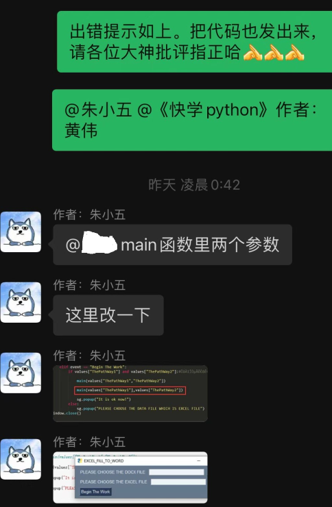 图12:作者朱小五老师半夜在读者群秒回答疑